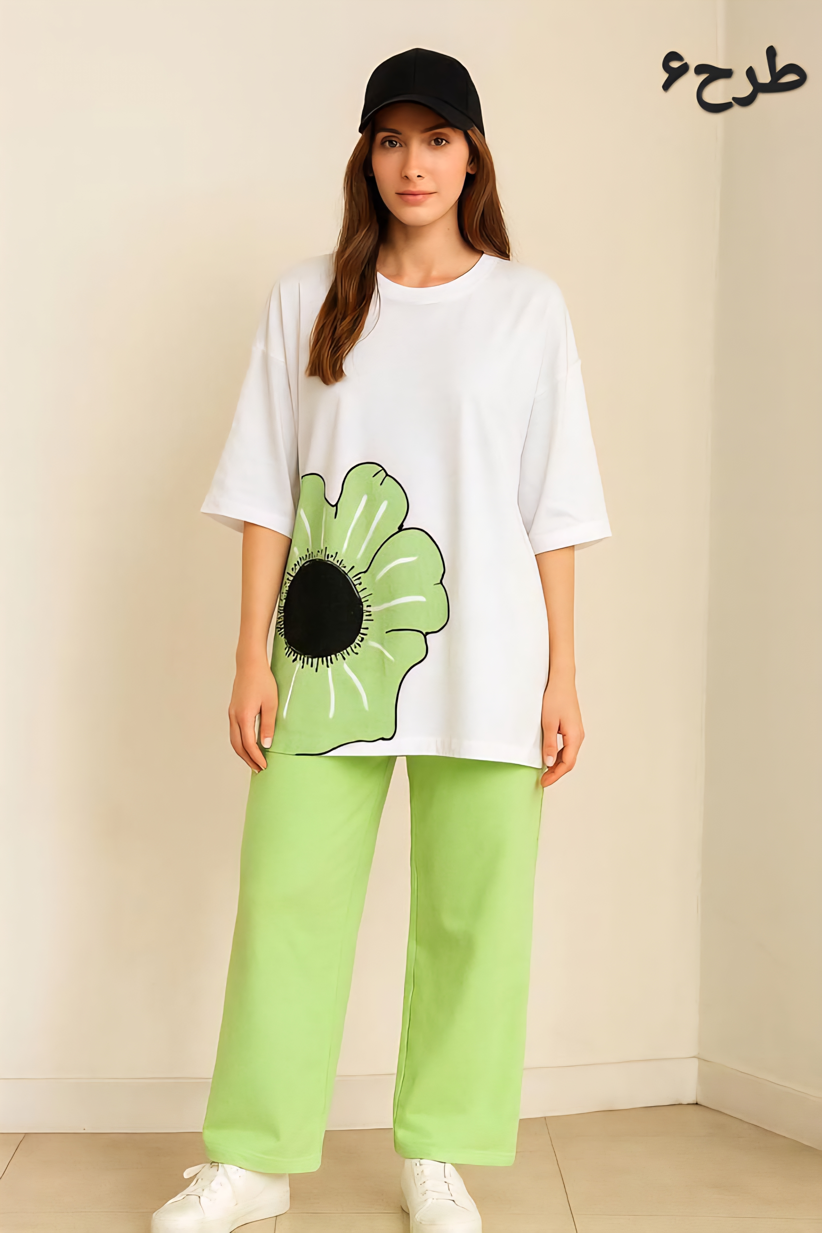 شیکترین و راحتترین ست لانگ بازار برای مسافرت و استفاده روزمره. جنس تیشرت از نخ پنبه سوپر و شلوار از گلکسی. سایز مناسب تا سایز۴۸. تنخور:شیک