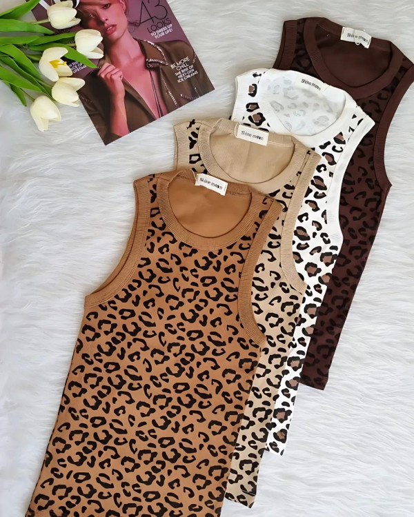 تاپ پلنگی یقه گرد خوش استایل، از اون تاپهای دخترونه ی همه کاره که حتما باید حداقل یک رنگشو توی کمدت داشته باشی، هم تو مهمونی هم و زیر مانتو و هم تو باشگاه میتونی قشنگترین استایلهارو باهاش بزنی.