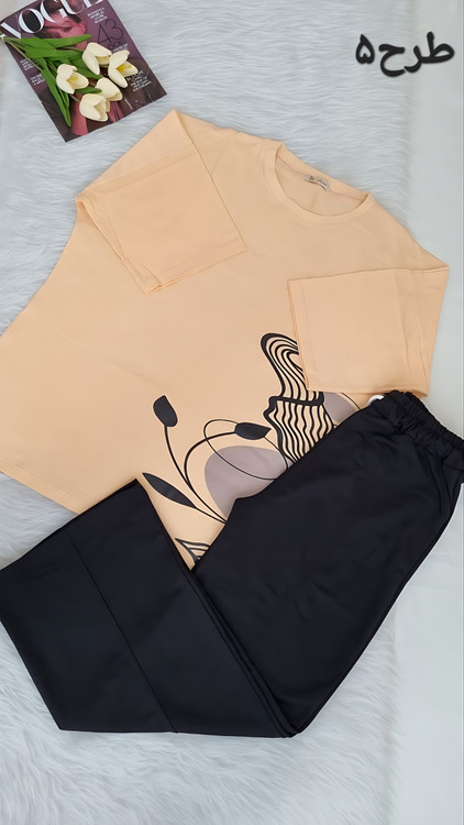 با این ست میتونی قشنگترین استایل شیک و راحت رو داشته باشی. جنس تیشرت: نخ پنبه سوپر، قد تیشرت: ۷۵، دورسینه: ۱۲۸. جنس شلوار: گلکسی، قد شلوار: ۱۰۳، سایز بندی: فری مناسب تا ۴۸.